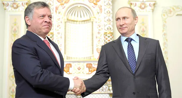 أعرب الرئيس الروسي فلاديمير بوتين عن تقدير موسكو للمساهمة الأردنية الكبيرة في تسوية الأزمات في منطقة الشرق الأوسط، وذلك بعد استقباله العاهل الأردني الملك عبد الله الثاني، الذي وصل إلى مقر الرئيس الروسي في منطقة نوفو اوغاريوفو بضواحي موسكو، في زيارة إلى روسيا الاتحادية تهدف لإجراء مباحثات مع الرئيس الروسي فلاديمير بوتين، بشأن تطورات الأوضاع في المنطقة، خاصة ملف الأزمة السورية وسبل إيجاد حل سلمي لها، لا سيما وأن الأردن ليس بعيدا عن تأثير تداعيات الأزمة الحاصلة في الأراضي السورية، حيث تستقبل المملكة الأردنية على أراضيها أكثر من 600 ألف لاجئ سوري.