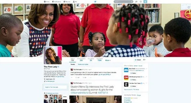 وأول من قام باستخدام "تويتر" الجديد اليوم، قرينة الرئيس الأميركي ميشيل أوباما.