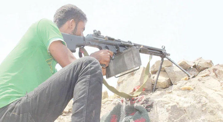 مقاتل من المقاومة يوجه سلاحه على الانقلابيين في إحدى جبهات كرش («الشرق الأوسط»)