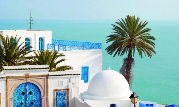 جانب من العقارات في منطقة سيدي بوسعيد بتونس المشهورة بطابعها المعماري المميز