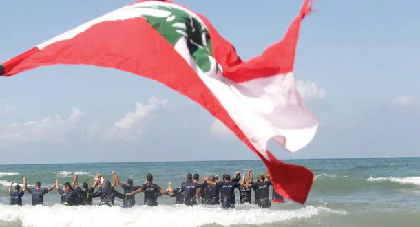 متطوعون في الدفاع المدني اللبناني نزلوا إلى مياه البحر، أمس، ورفضوا مغادرتها حتى أقر مجلس النواب قانون تثبيتهم في وظيفتهم (رويترز)