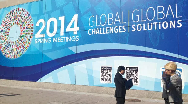 دشن صندوق النقد الدولي والبنك الدولي أمس اجتماعات الربيع السنوي في واشنطن بحضور العشرات من وزراء المالية ومحافظي البنوك المركزية في العالم («الشرق الأوسط»)