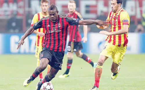 بالوتيللي خلال مشاركته في مباراة الميلان وبرشلونة الأخيرة ضمن دوري الأبطال (رويترز)