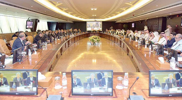 جانب من لقاء ماكلاي وزير التجارة النيوزيلندي والوفد المرافق له مع قطاع الأعمال السعودي بمجلس الغرف السعودية أمس («الشرق الاوسط»)