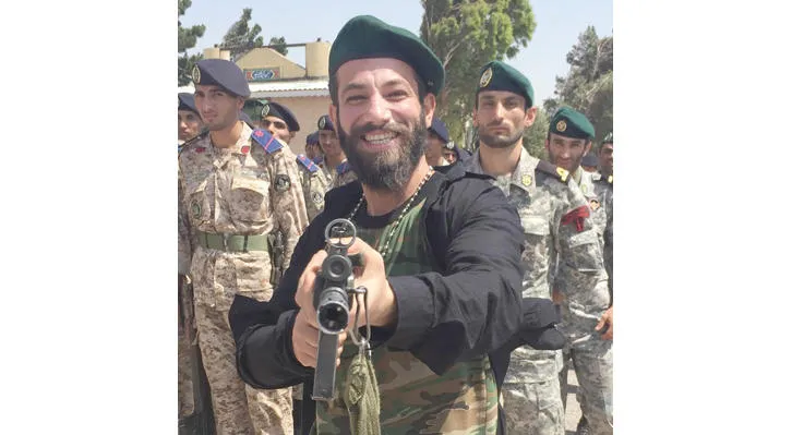 مغني الراب أمير تتلو أثناء تسجيل أغنية بين عناصر من القوات الخاصة في بحرية الجيش الإيراني