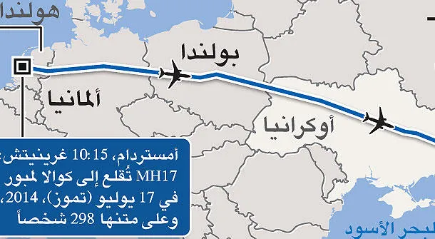 وكانت قد أسقطت الطائرة الماليزية وهي من طراز «بوينغ 777» فوق المنطقة الخاضعة لسيطرة المتمردين الموالين لروسيا في شرق أوكرانيا بصاروخ خلال رحلة بين أمستردام وكوالالمبور؛ ما أدى إلى مقتل 298 كانوا على متنها، بينهم 196 هولنديا.