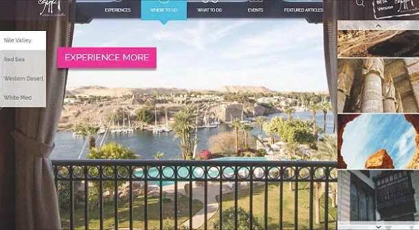 ويعرض الموقع الأماكن السياحية المصرية مقسمة لأربعة قطاعات رئيسية، هي وادي النيل، والبحر الأحمر، والبحر المتوسط، والصحراء الغربية. أما عن المنتجات السياحية، فقسمها الموقع إلى ثقافية - روحانية، والطبيعة والحياة البرية، والأنشطة الرياضية ووسائل الترفيه، والمنتجعات الصحية والاستشفاء، والبحر والشمس، والأنشطة المائية.