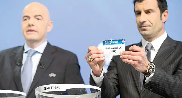 فيغو نجم ريال مدريد السابق يسحب اسم فريقه ليقع في مواجهة بايرن ميونيخ (إ.ب.أ)