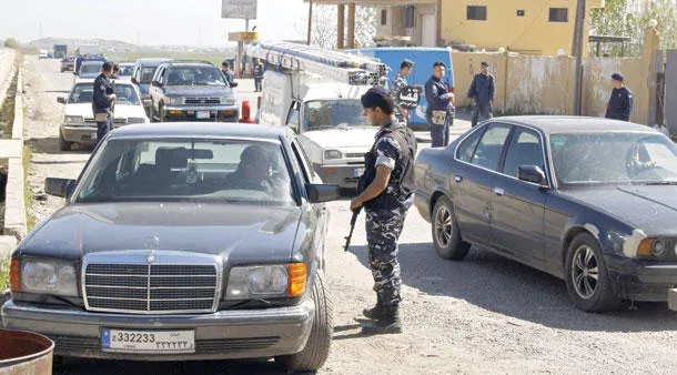 قوات أمن لبنانية تتفحص سيارات عند أحد الحواجز في سهل البقاع في إطار الحملة الأمنية أمس (أ.ف.ب)