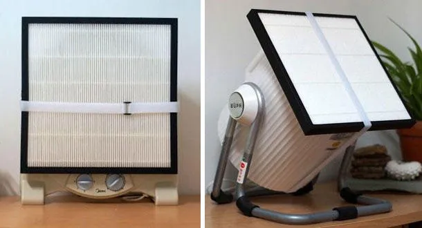 وبعد عمليات قص ونشر بسيطة، يثبُت الفلتر أمام المروحة ليمكنه تنقية الهواء الذي تدفعه من أي جزيئات ملوثة.