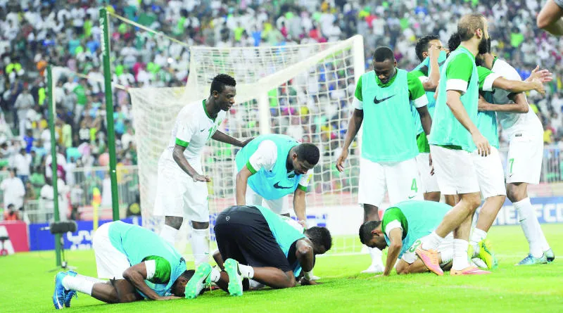 فرحة كبيرة من اللاعبين بعد الانتصار الكبير على الإمارات (المركز الإعلامي للمنتخب السعودي)