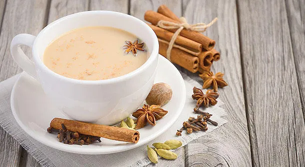 مكونات أخرى: 1- كوب ماء 4-6 أكواب حليب 2 ملعقة كبيرة أوراق شاي أسود عالي الجودة («سيلون» أو «إنغليش بريكفاست» حال عدم توافر الأول صاحب الأوراق العريضة). سكر الإعداد: داخل مقلاة، أضف البهارات إلى كوب من الماء، ثم اتركها حتى الغليان. بعد ذلك، ارفعها عن النار، واتركها تهدأ لمدة تتراوح بين 5 و20 دقيقة، تبعًا لمدى قوة نكهة البهارات التي ترغبها. أضف 4-6 أكواب من الحليب كامل الدسم إلى الماء والبهارات. وإذا لم يتوافر لديك حليب كامل الدسم، يمكنك الاستعانة بحليب خالي من الدسم أو خفيف الدسم، مع إضافة بعض الكريمة إليه لا تتجاوز بضعة ملاعق كبيرة. اترك مزيج الحليب والبهارات على النار حتى يصل الغليان، ثم ارفعه من على النار. أضف الشاي إلى الحليب واتركه ما بين 5 و10 دقائق، حسب الرغبة. عند هذه النقطة، يمكنك إضافة السكر، أو تقديمه من دون سكر وتترك الأفراد يضيفون كمية السكر التي يفضلونها. إلا أنه بوجه عام، عادة ما يضاف السكر قبل التقديم.