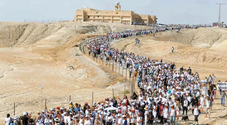 ناشطات من منظمة {نساء للسلام} يشاركن في مسيرة في مدينة أريحا بالضفة الغربية أمس (أ.ف.ب)