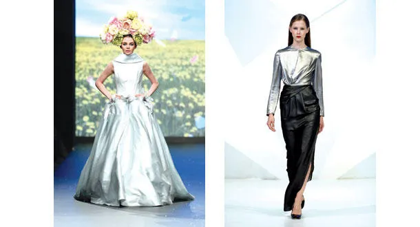 هذا بالتحديد ما حدث في عرض المصمم المغربي سعيد محروف في اليوم الثاني من «فاشين فوروود». للحظات مرت مرور البرق أنسانا المكان والزمان، لأنه أرسل عارضاته في فساتين ناعمة بطيات مدروسة يصعب على أي أحد أن يصوغها بالدقة والسهولة، بالنظر إلى أنها مصنوعة من أقمشة خفيفة وناعمة. كان هناك أيضا تفصيل لا يعلى عليه في بعض الفساتين التي تكونت من تنورات طويلة انسدلت على أقمشة الموسلين، بينما جاء الجزء الأعلى فيها من الساتان ومفصلا عند الأكتاف والياقات وكأنه توكسيدو. لكن ربما تكون الألوان التي تراقصت على كل درجات الرمادي، من الفضي إلى الرصاصي والداكن، هي المفتاح الذي يمكن أن يكشف لنا الفكرة التي انطلق منها المصمم.