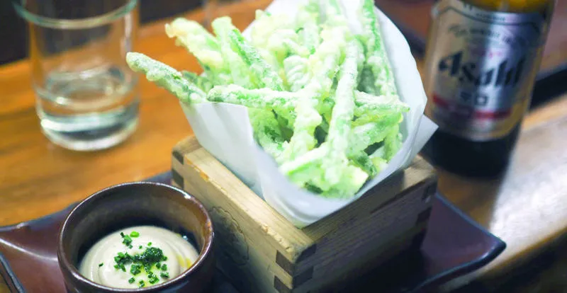 * اسم الطبق: تمبورا الفاصولياء الخضراء green bean tempura with truffle aioli * التقيييم: ***** 5 نجوم * أين: سوشي سامبا لندن Sushi Samba London * المذاق: مع ازدياد عدد النباتيين ترى المطاعم العالمية تخصص حصة كبيرة من لائحة الطعام لهم، ولو أن الأطباق النباتية لا تزال بحاجة إلى تطوير لأنها تفتقد إلى النهكة الجيدة، فإن هذا الطبق استطاع أن يجمع كل النكهات على الرغم من بساطته فهو يعتمد على زيت الكمأة الذي يجعل من الفاصولياء الخضراء المقلية المقرمشة طبقا رائعا للنباتيين. * العنوان: Heron Tower، 110 Bishopsgate، 39th Floor، London EC2N 4AY