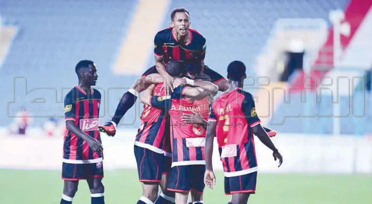 لاعبو الرائد يحتفلون بفوزهم على الفيصلي (تصوير: عبد الرحمن القحطاني)