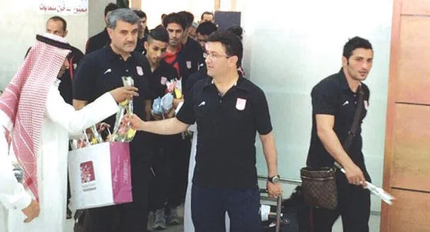 جانب من وصول فريق تراكتور الإيراني أمس إلى جدة وسط قرار بحل إدارة نادي الاتحاد