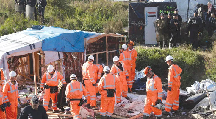 بدأ في فرنسا أمس الثلاثاء هدم مخيم اللاجئين العشوائي المثير للجدل في شمال فرنسا بمدينة كاليه في عملية يأمل المسؤولون أن تستغرق أسبوعا. وقال متحدث باسم وزارة الداخلية إن عملية الهدم ستبدأ يدويا وإن الجرافات لن تباشر العملية على الفور في محاولة لتخفيف التوترات. واستمرت عملية إخلاء المخيم المعروف باسم «الغابة» بعد يوم من مغادرة 2300 شخص المكان على متن حافلات. واصطف المئات من المهاجرين قبل فجر صباح أمس انتظارا لتسجيل أسمائهم وإرسالهم لواحد من 450 «مركز استقبال» في أنحاء فرنسا. وسادت الفوضى المشهد العام حيث احتجزت الشرطة القُصر بمفردهم على جانب الطريق.
