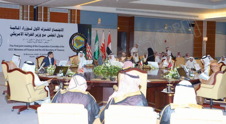 جانب من اجتماع وزراء المالية الخليجيين مع نظيرهم الأميركي أمس في الرياض (تصوير: صالح بشير)