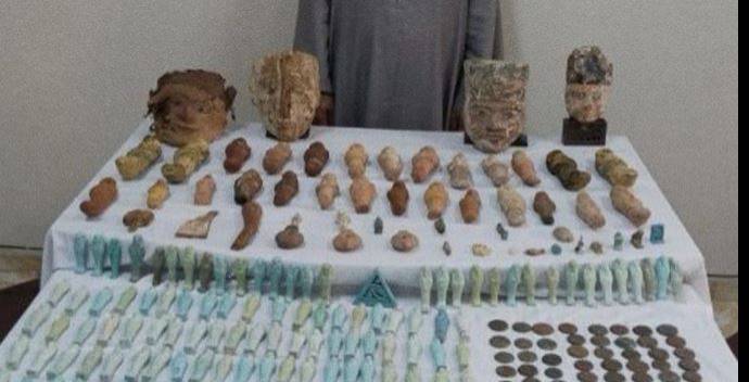 وأوضحت الوزارة في بيانها أنه عقب تقنين الإجراءات تم استهدافه وأمكن ضبطه، وبحوزته 277 قطعة أثرية متنوعة. وبمواجهته اعترف بأن القطع الأثرية المضبوطة نتاج أعمال الحفر والتنقيب غير المشروع عن الآثار.