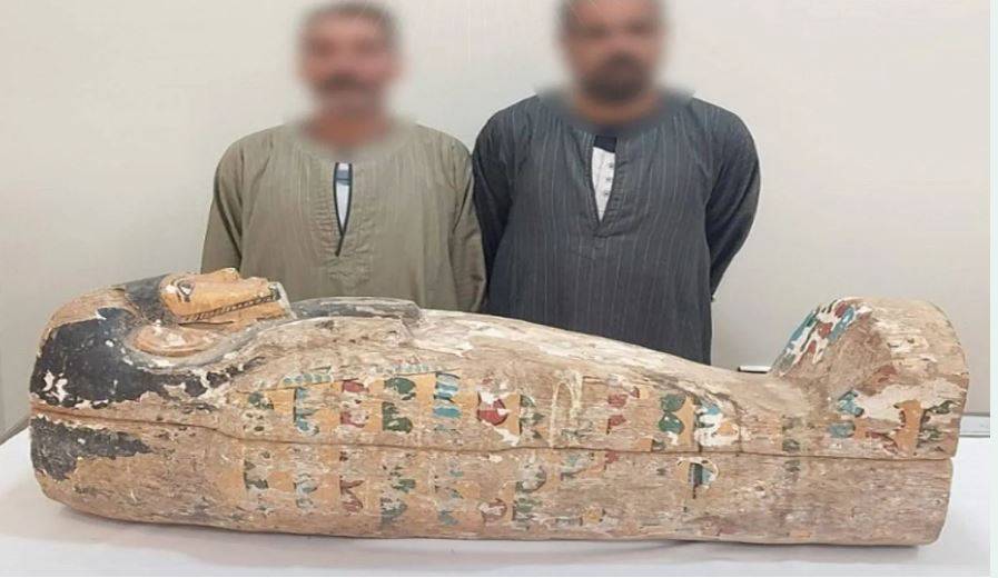 التابوت الأثري وُجد بحوزة شخصين (وزارة الداخلية المصرية)