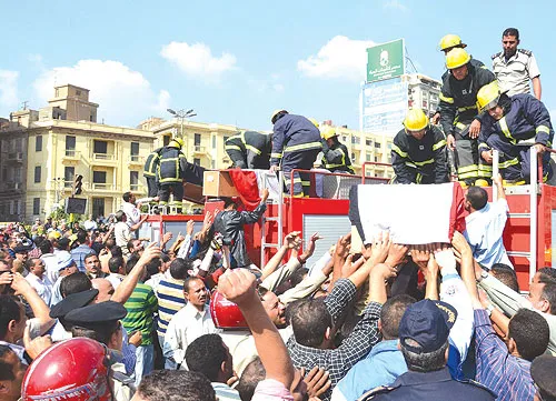 وتحولت جنازة رجال الشرطة الثلاثة الذين قتلوا أمس إلى مظاهرة ضد جماعة الإخوان المسلمين التي ينتمي إليها الرئيس السابق مرسي. وردد المشيعون هتافات: «الشعب يريد إعدام الإخوان»، و«يا شهيد نام وارتاح.. وإحنا نكمل الكفاح»، و«يا بديع يا بديع.. حق شهيدنا مش هيضيع»، في إشارة إلى محمد بديع مرشد جماعة الإخوان المحبوس احتياطيا على ذمة عدد من القضايا الجنائية.