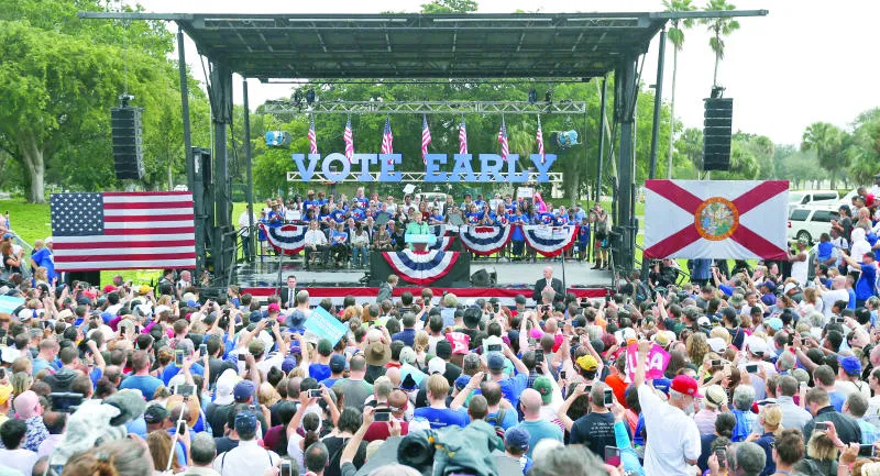 وقد عقد نائب الرئيس الأميركي جو بايدن للولاية عدة تجمعات انتخابية أمس السبت، حيث شارك مع زوجته في تجمع انتخابي في مدينة بتسبرغ للترويج لمرشحة الحزب الديمقراطي هيلاري كلينتون، واستهدف جو بايدن بصفة خاصة الناخبين من عمال صناعات الحديد، حيث تسود أحاسيس الإحباط لديهم نتيجة التراجع الاقتصادي الكبير. وتحدث بايدن في تجمع انتخابي آخر في مدينة بريستول في الولاية للدعاية، وحث الناخبين على التصويت لهيلاري كلينتون.