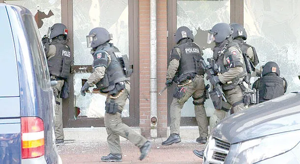مداهمات الشرطة الألمانية في ولايتي سكسونيا السفلى والراين الشمالي فيستفاليا أدت إلى اعتقال 5 أشخاص بتهمة التطرف أمس (د.ب.أ)