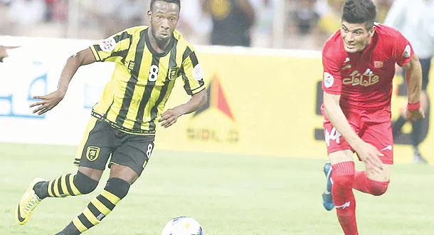 فهد المولد يجري بالكرة في مباراة الاتحاد وتبريز الإيراني أول من أمس (تصوير: عدنان مهدلي)