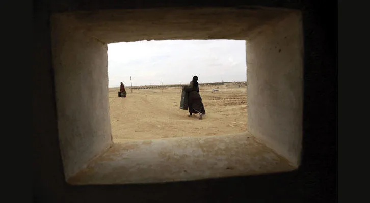سوريتان تجمعان صناديق المقذوفات التي استخدمتها «قوات سوريا الديمقراطية» في معارك الجبهة الشمالية لمدينة الرقة معقل تنظيم داعش (أ.ف.ب)