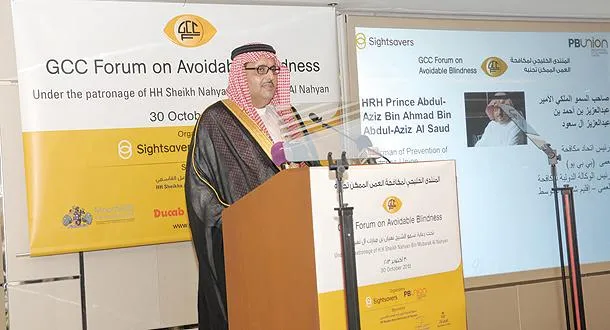 وجاء ذلك في كلمة للأمير عبد العزيز بن أحمد بن عبد العزيز بافتتاح المنتدى الخليجي الأول لمكافحة العمى في مدينة دبي الإماراتية، حيث عقد المنتدى تحت رعاية الشيخ نهيان بن مبارك آل نهيان وزير الثقافة والشباب وتنمية المجتمع رئيس مقر المنظمة الدولية لإنقاذ البصر «سايت سيفرز» في الإمارات.