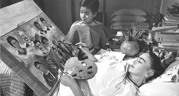 تضع فريدا مسند اللوحة أمام المرآة وتتناول الفرشاة لكي ترسم، من خلال ملامح وجهها المميزة وحاجبيها الأسودين المتصلين، ما يدور في أعماق روحها من ألم واضطرام. لذلك فإن سيرة الرسامة المكسيكية التي ألهمت الكثير من الكتاب كما أغرت المنتجين الأميركيين بنقل قصتها إلى الشاشة في فيلم روائي. لقد كانت في الثامنة عشرة حين ركبت الحافلة عائدة من المدرسة فاصطدمت الحافلة بالترام ومات من ركابها من مات وجرح من جرح. وكان نصيب فريدا سيخ معدني انغرز في جسدها وخرج من ظهرها. لقد كتب الحادث عليها أن تتوجع منذ بداية حياتها، حيث خضعت لسبع عمليات جراحية في العمود الفقري واضطر الأطباء إلى بتر ساقها وارتدت حزاما حديديا حول جسدها طوال حياتها لتموت وهي في السابعة والأربعين من العمر.