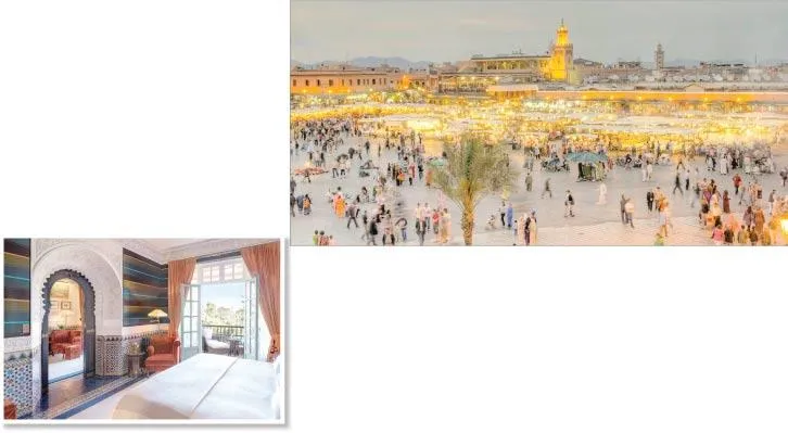 «رويال منصور»، «المامونية»، «نامسكار»، مثلاً، هي نماذج لعناوين سياحية فاخرة بمراكش، يصعب أن تقنع نفسك والآخرين أنها مجرد أماكن للإقامة السياحية، تتضمن غرفًا ومستقبلين وقائمين على الخدمة المرافقة. إنها أكبر من ذلك، غير أن خاصيتها الأولى أنها ليست في متناول الغالبية الساحقة من الناس، بغض النظر عن جنسياتهم، لتبقى حكرًا على أغنى الأغنياء، لذلك تتجاور في دفاترها الذهبية توقيعات مشاهير السياسة والاقتصاد والفن والرياضة والموضة، عبر العالم.