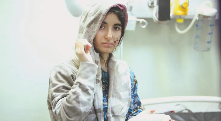 نازحة أصيبت بجروح خلال هروبها من مناطق سيطرة «داعش» في الموصل تتلقى العلاج في مستشفى غرب أربيل أمس (رويترز)