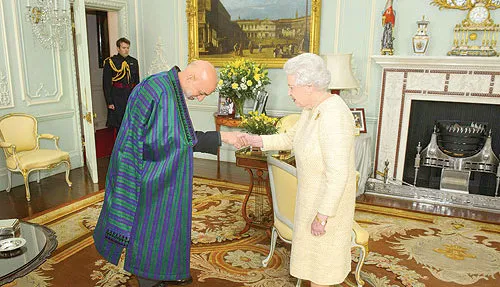 كرزاي يلتقي الملكة إليزابيث الثانية بعد محادثات مثمرة مع شريف باستضافة بريطانيا