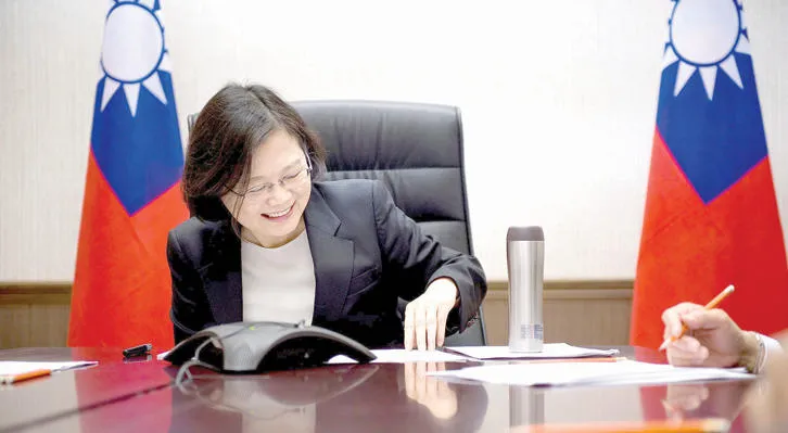 رئيسة تايوان تساي إينغ - وين خلال مكالمتها مع ترامب (صورة وزعها مكتبها أمس)