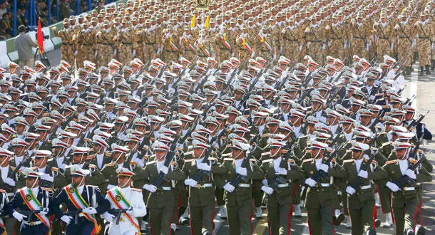 جانب من استعراض عسكري أمس بمناسبة عيد الجيش الايراني أمام ضريح الراحل آية الله الخميني (ا.ف.ب)
