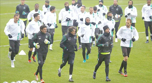 من استعدادات لاعبي سبورتينغ لشبونة لمواجهة ليغيا وارسو من أجل مكان في يوروبا ليغ (رويترز)