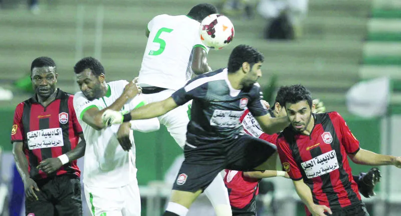 لقطة لإحدى الفرص الضائعة لفريق الأهلي أمام الرائد في دوري المحترفين السعودي (تصوير: عدنان مهدلي)