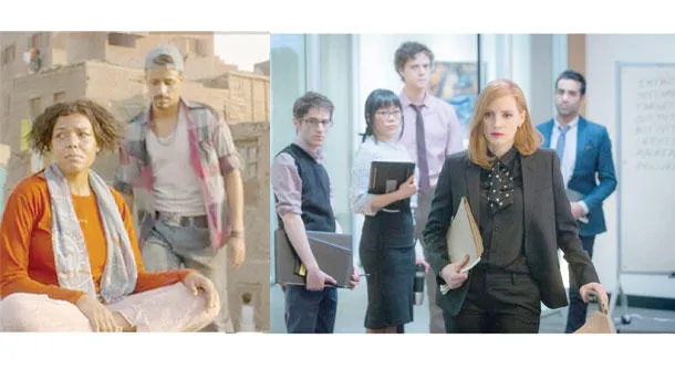 الممثلة جسيكا شستين في مشهد من فيلم افتتاح مهرجان دبي الدولي «مس سلون» - من الفيلم المصري «يوم للستات» لكاملة أبو ذكري