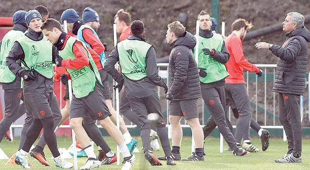مورينيو يتابع تدريبات يونايتد قبل التوجه للقاء زوريا الأوكراني (رويترز)