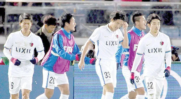 جانب من فرحة لاعبي كاشيما الياباني بالتأهل للدور الثاني من مونديال الأندية (أ.ف.ب)