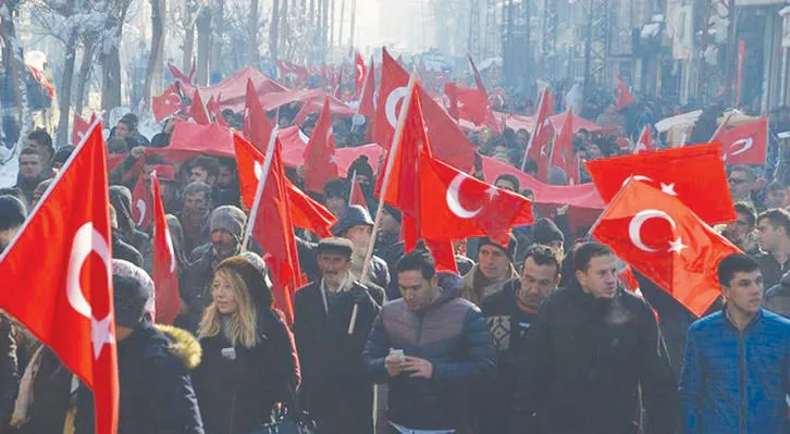 مظاهرة في ديار بكر جنوب شرقي تركيا ضد الإرهاب أمس («الشرق الأوسط»)
