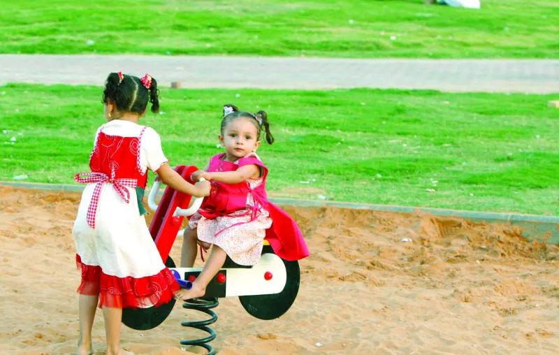 طفلتان تلعبان في حديقة عامة وسط العاصمة الرياض («الشرق الأوسط»)
