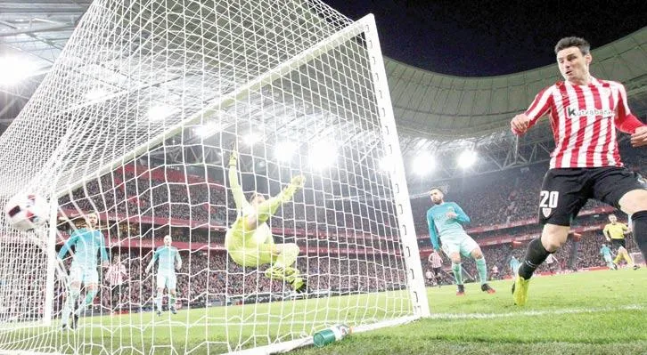 وبات يتعين على برشلونة الفوز بهدف نظيف في مباراة الإياب التي ستقام في معقله ملعب «كامب نو» يوم الأربعاء المقبل، من أجل تفادي الخروج المبكر من المسابقة، فيما يكفي بلباو التعادل بأي نتيجة لحجز بطاقة التأهل لدور الثمانية.