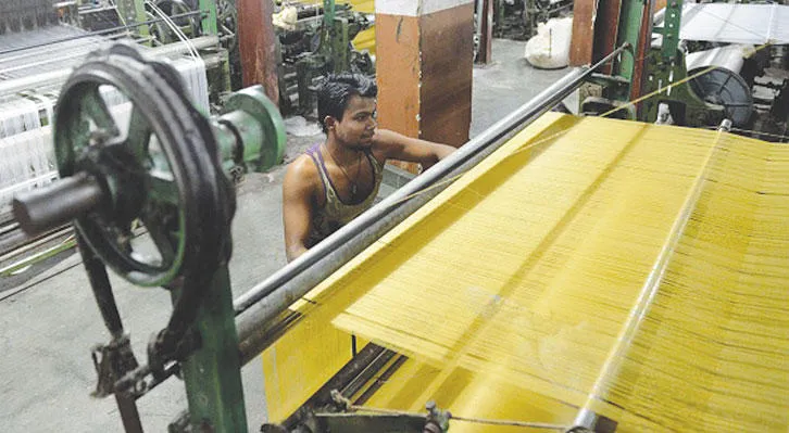 عامل هندي في أحد مصانع الأقمشة في مدينة أحمد آباد (أ.ف.ب)
