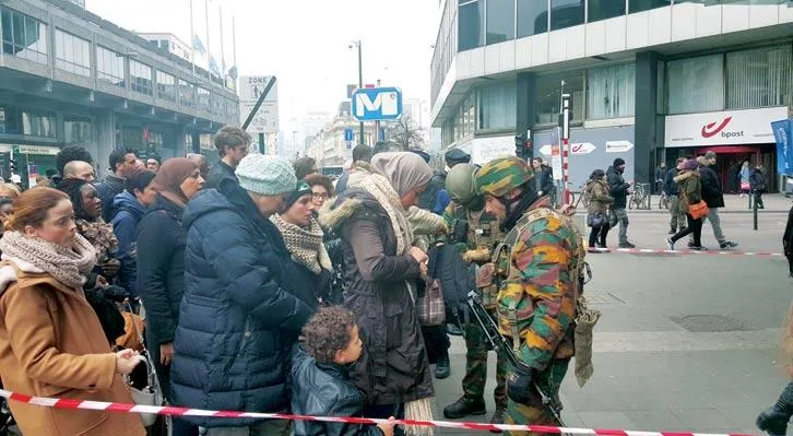 عمليات تفتيش أمام محطات القطارات عقب تفجيرات بروكسل في مارس الماضي («الشرق الأوسط»)