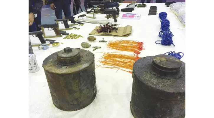 أسلحة وأدوات تفجير تم ضبطها في حملة على «داعش»