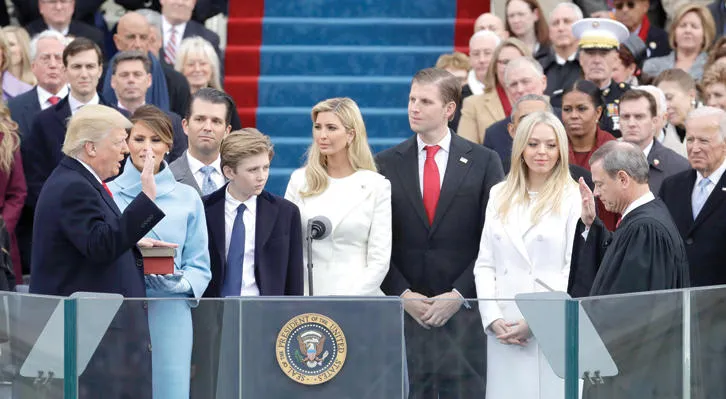 الرئيس دونالد ترامب محاطا بأفراد عائلته أثناء تأدية القسم (أ.ب)