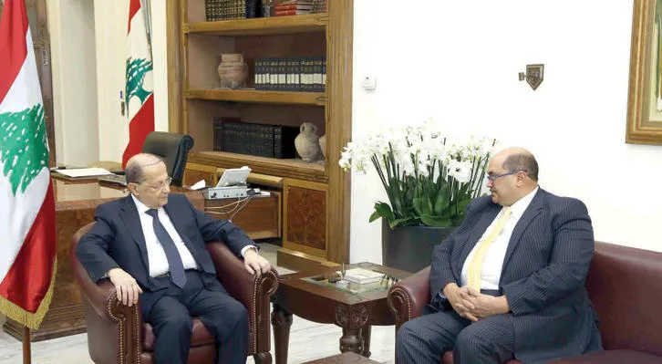 الرئيس اللبناني ميشال عون لدى لقائه سفير جنوب أفريقيا أمس (دالاتي ونهرا)